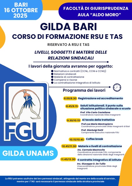 La Gilda degli insegnanti di Bari e BAT augura a tutte le colleghe e i colleghi un proficuo nuovo anno scolastico.